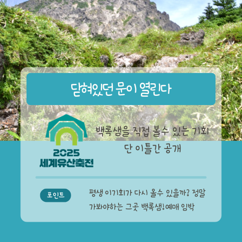 한라산의 백록샘은 우리나라에서 가장 높은 곳에 위치한 샘으로, 해발 1660m에서 연중 물이 솟아나는 용천수입니다. 이번 개방은 최초로 민간에 공개되는 역사적인 순간으로, 탐방객들은 이 신비로운 장소를 직접 경험할 수 있습니다. 이곳은 항상 마르지 않고, 제주도의 자연을 상징하는 중요한 장소입니다.